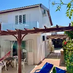 La villa cuenta con una cocina bien equipada, un comedor al aire libre para mayor comodidad de los huéspedes. Los huéspedes también pueden hacer uso de hervidor eléctrico, nevera y un horno para preparar su propia comida. La parada de autobús más cercana, Pervolia Tourist Area - 6th, está a unos 10 minutos a pie.